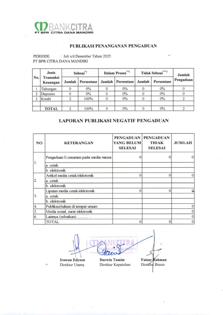 Publikasi Penanganan Pengaduan Semester II
